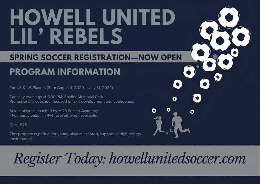 Lil' Rebels is an exciting new grassroots soccer program designed specifically for children aged 4 to 6. Professionally trained by MDS, this program focuses on teaching the basics of soccer in a fun and engaging environment. The aim is to foster a love for the sport while developing essential skills such as teamwork, coordination, and sportsmanship. Best of all, Lil' Rebels is offered at just $75, making it accessible to all families who want to introduce their young ones to the joys of soccer. Early soccer training offers numerous benefits, including the development of physical skills such as balance, coordination, and agility, as well as social skills like communication and teamwork. It also instills discipline and boosts self-confidence, promoting a healthy lifestyle from a young age. Howell United Soccer Club would be thrilled to welcome your child to the Lil' Rebels program. Our dedicated coaches are passionate about helping young players develop their skills and confidence on the field. By joining Lil' Rebels, your child will not only learn the fundamentals of soccer but also make new friends and create lasting memories. We can't wait to see your little one take their first steps in the world of soccer with us!